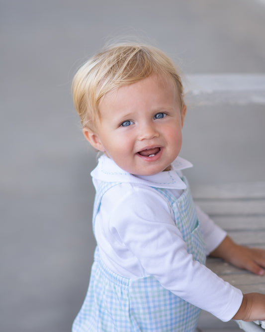 Merry Plaid Peter Pan Collar Boy Body+Diaper Cover