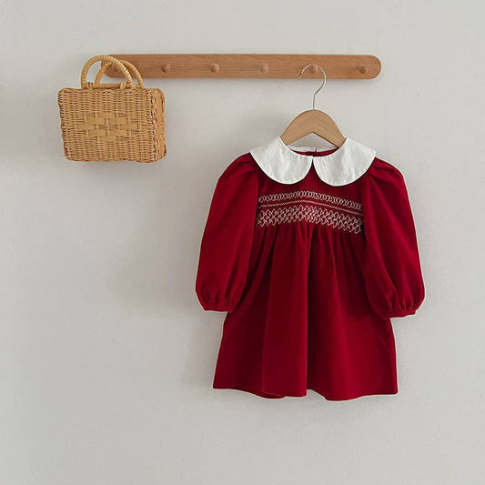 Holiday Doll Neck Red Long Sleeve Sister Matching Dress