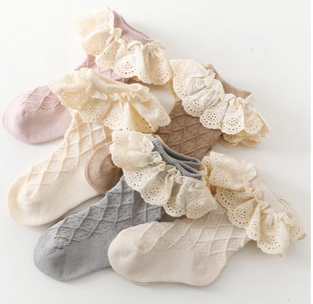 Cute cotton baby socks with ruffles. sizes: S: 0-12 months M: 1-2 years L: 3-4 years XL: 5-6 years