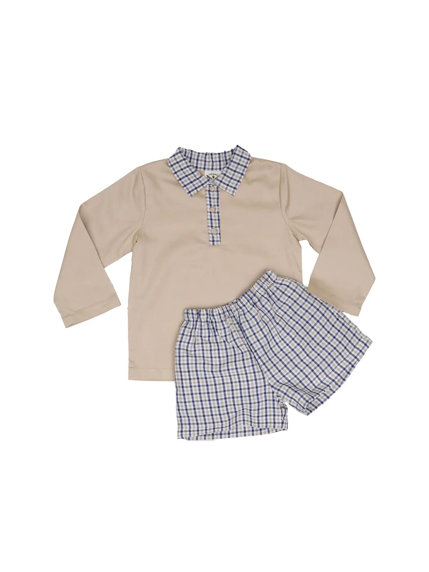 Dress your little gentleman in style with our John Blue/Brown Plaid Short Set for boys. These shorts paired with a matching top exude charm and playfulness. Perfect for sunny adventures and stylish outings.