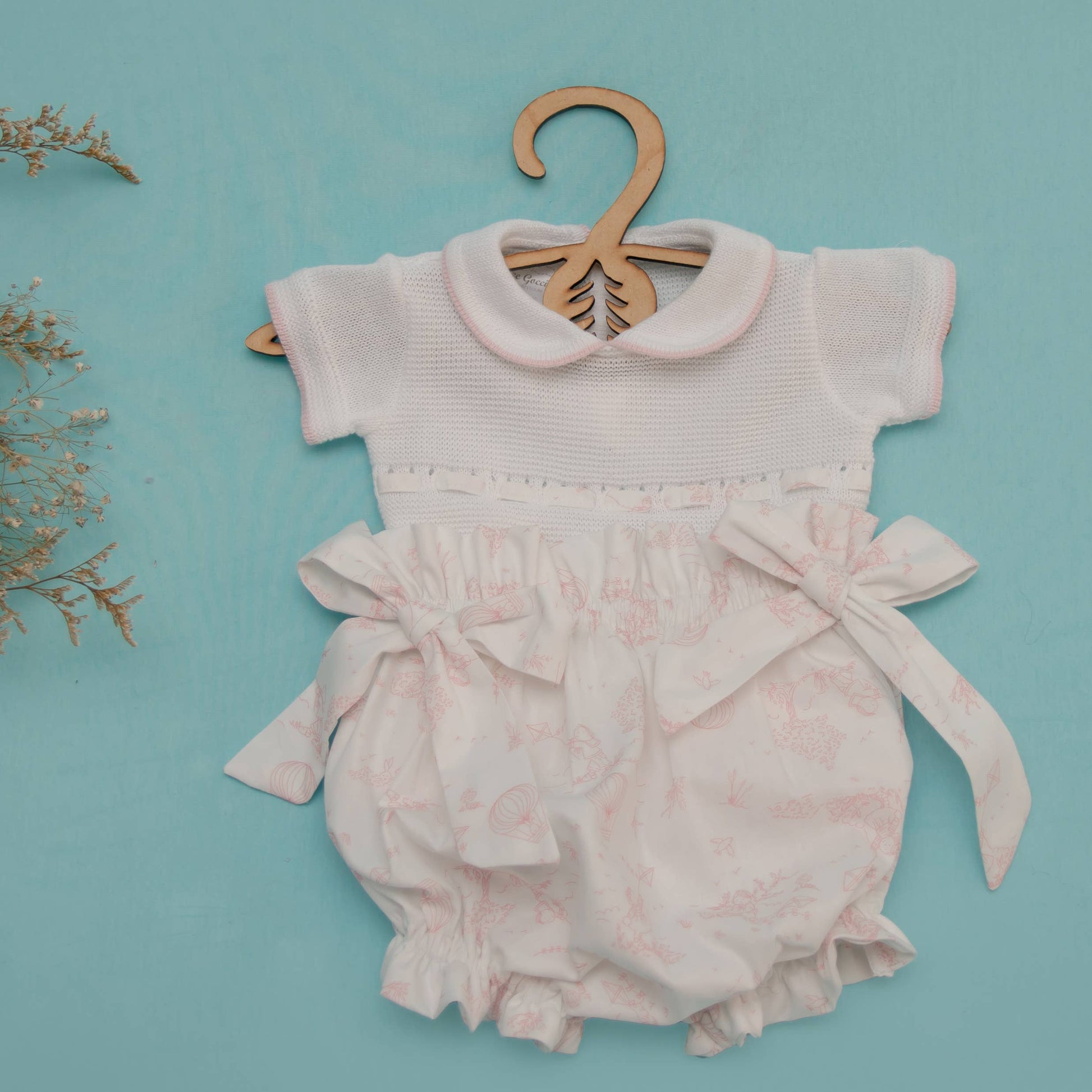 This adorable ELVIA SWEATER & BUBBLE PANTY features charming bunny accents and darling toile bottoms, making it picture-perfect for a photoshoot.