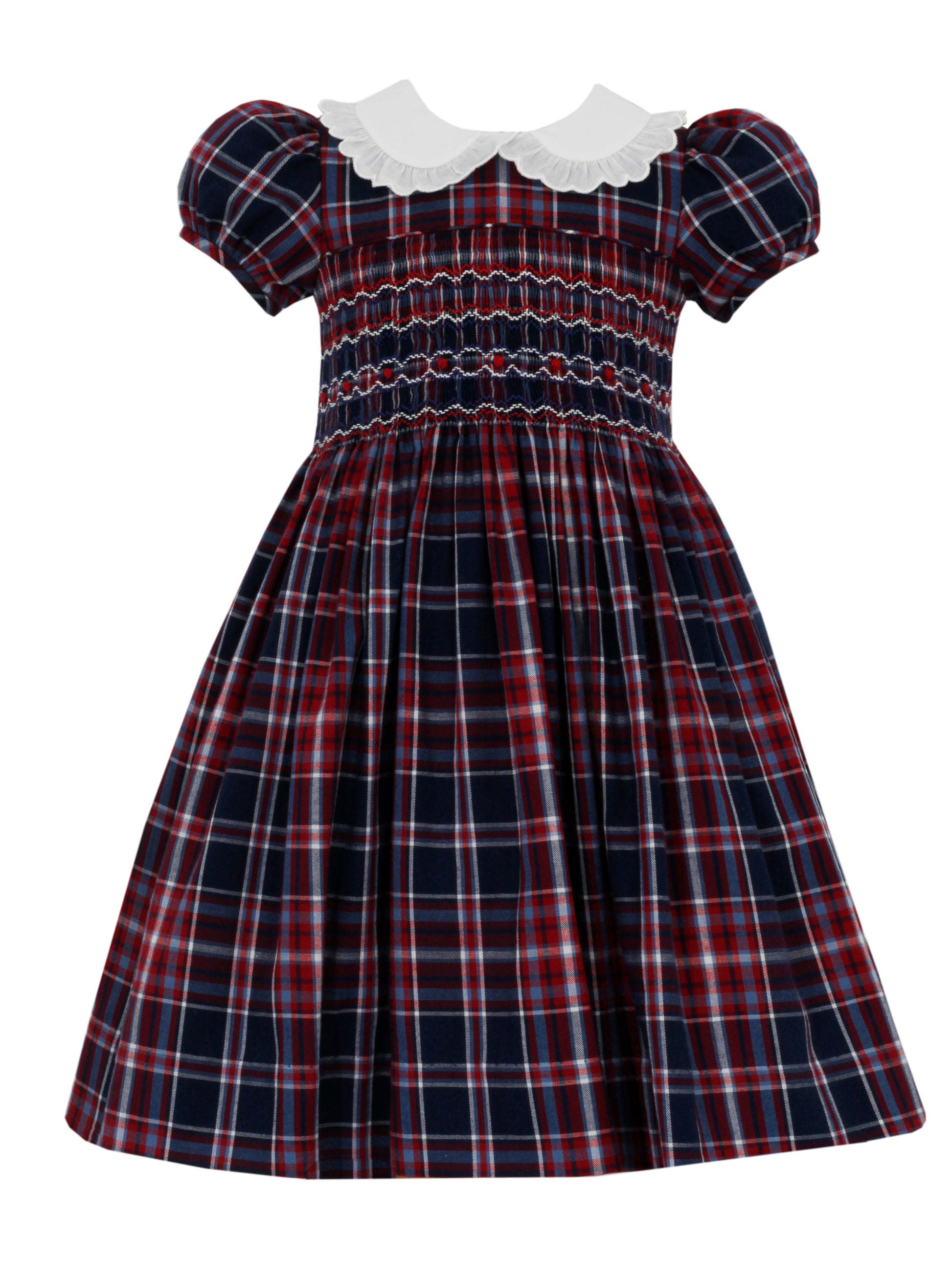 Anavini Girl's Dress - Navy and Red Plaid S/S