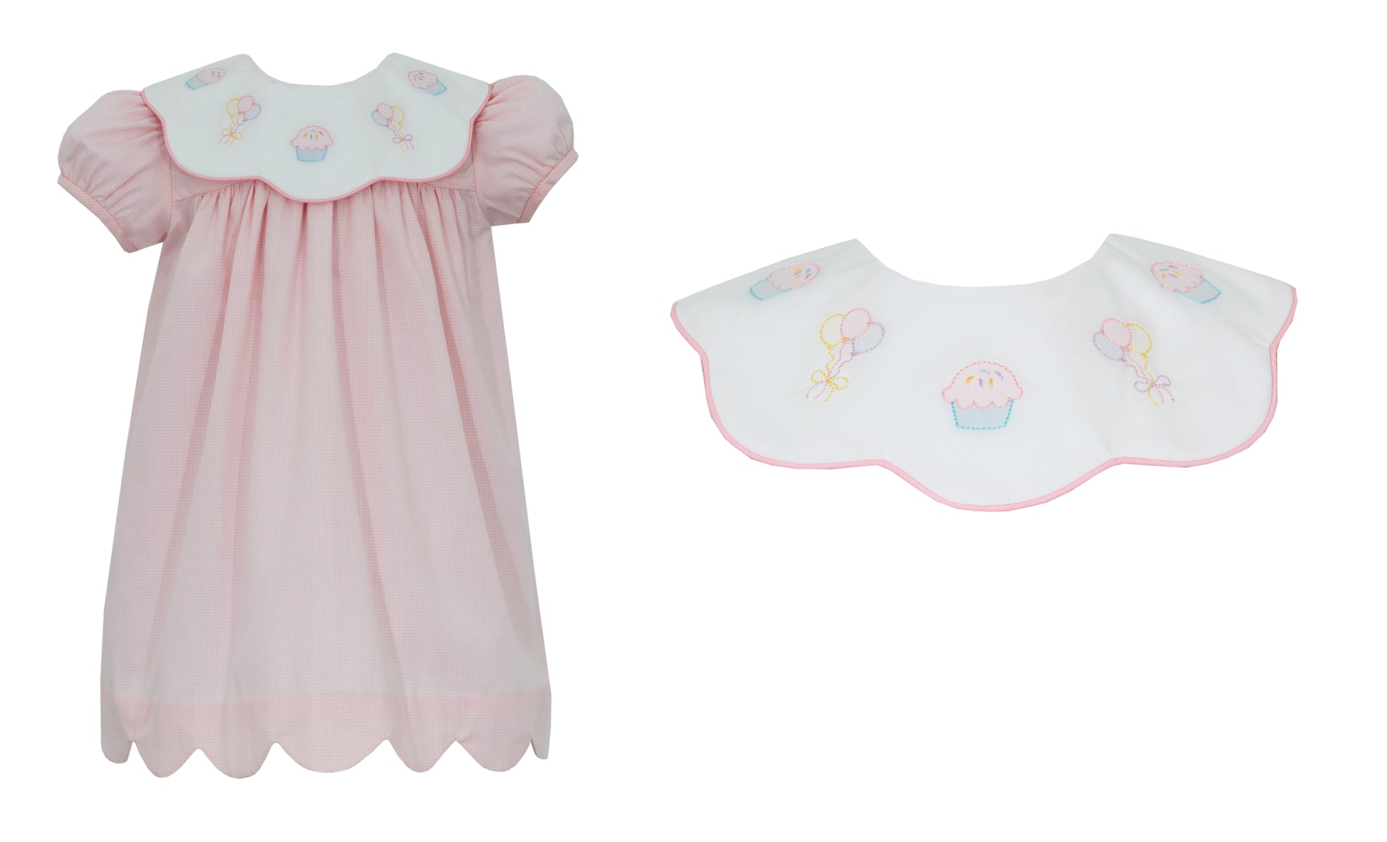 Girl's Dress w/ Round Scalloped Collar - Pink Gingham - S/S