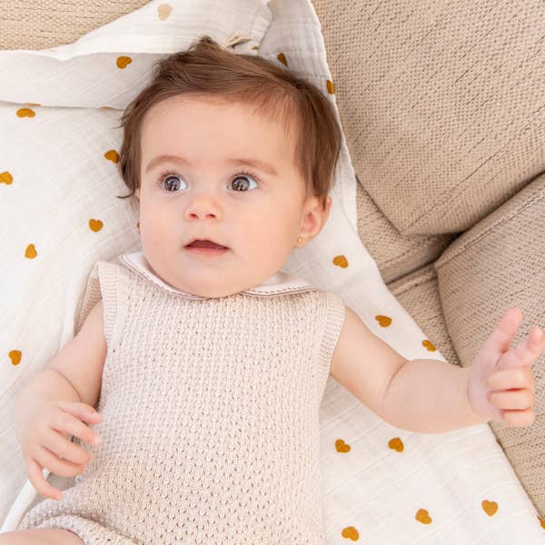 This pelele is perfect for newborns, made with 100% Perle acrylic for a fresh and summery feel. Its adorable design captures the sweet and cute essence of a baby's first days of life, with carefully selected details that add an elegant touch to their innocence. Not just a functional piece, but also a lovely gift to celebrate the arrival of a new family member. Wrap your little one in love and comfort with this dedicatedly crafted scarf.