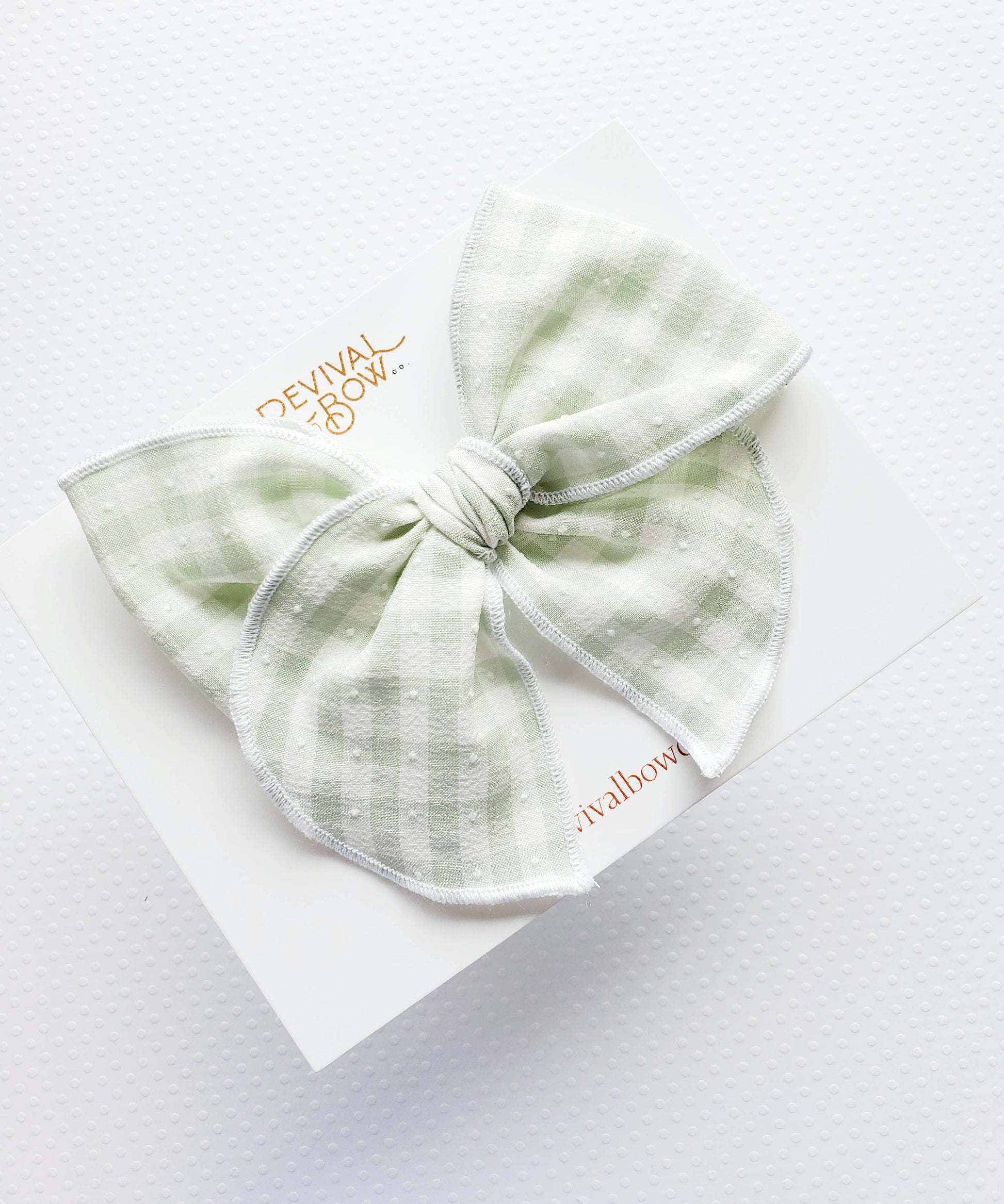 A Spring or Summer must-have, the adorable Green Gingham Fable Bow adds a cute touch to any child's hairdo. Expertly crafted for the brightest and most colorful of seasons.
