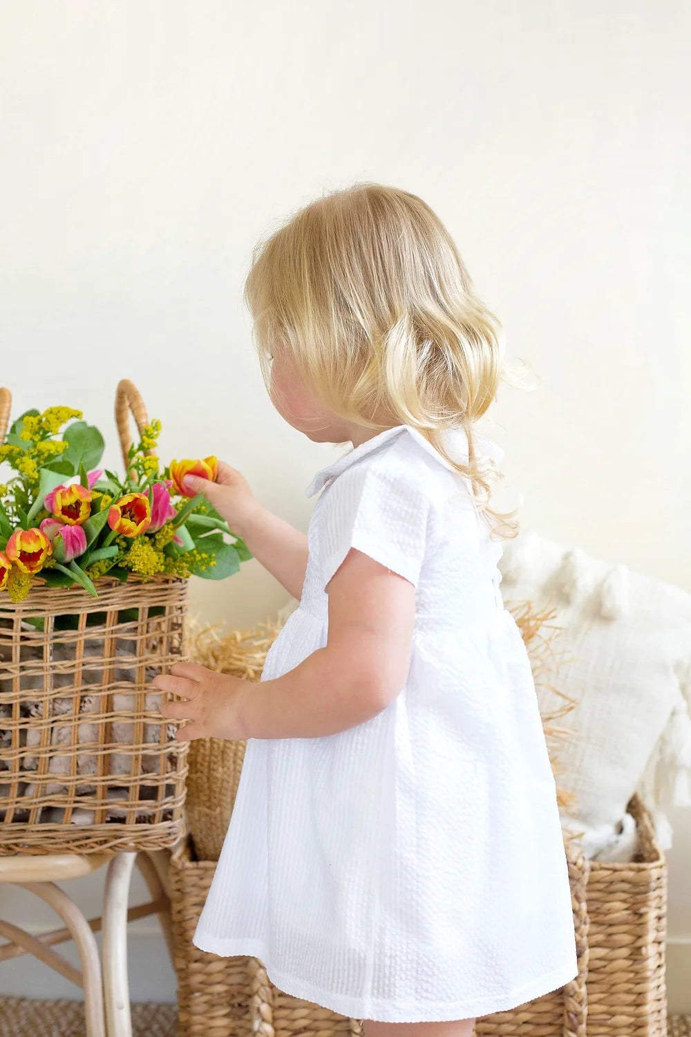 Introducing the latest addition to our collection: a stunning white seersucker dress, perfect for your little one! This chic and refined dress is designed with attention to detail, making it the ideal choice for summer outfits, special events, or simply to make your baby girl shine.